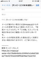 サイト URLを全力で押した後で指定送信用のアドレスにメールを送っていきます。