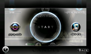 曲目と難易度、タッチポイント(ノート)の表示演出などを設定してゲームを始めます!