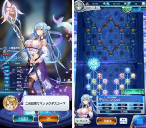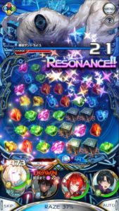 同色のブロックが連なったところをタップして消していき、キャラの攻撃力を高めていきましょう。