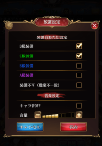 放置中の装備品の売却設定をします